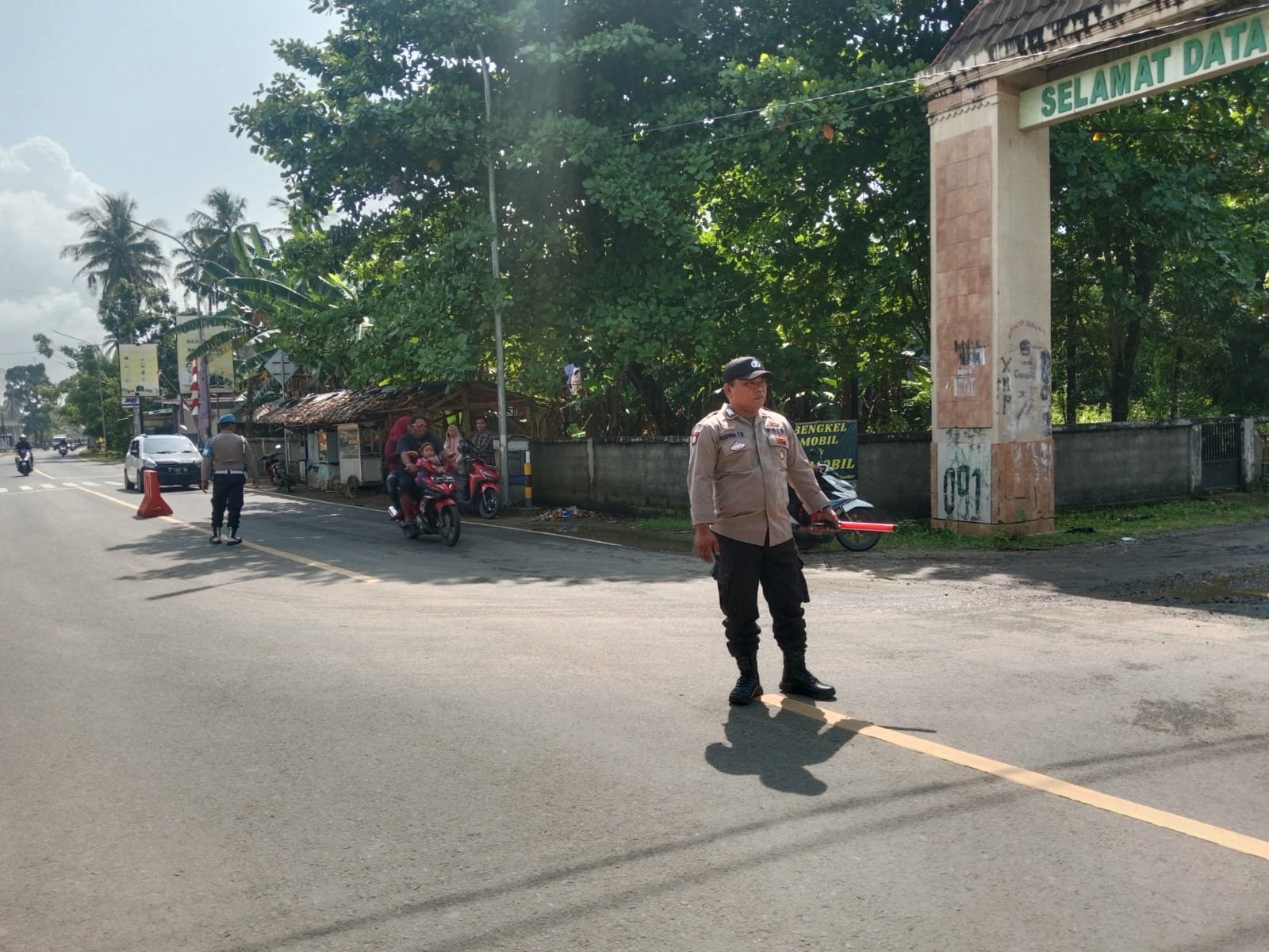 Untuk mengantisipasi kemacetan, terjadinya laka lantas dan tindak kejahatan anggota Polsek Wanasalam melaksanakan strong point d pusat keramaian, rawan laka dan macet d ruas jalan Malingping-Binuangeun.
