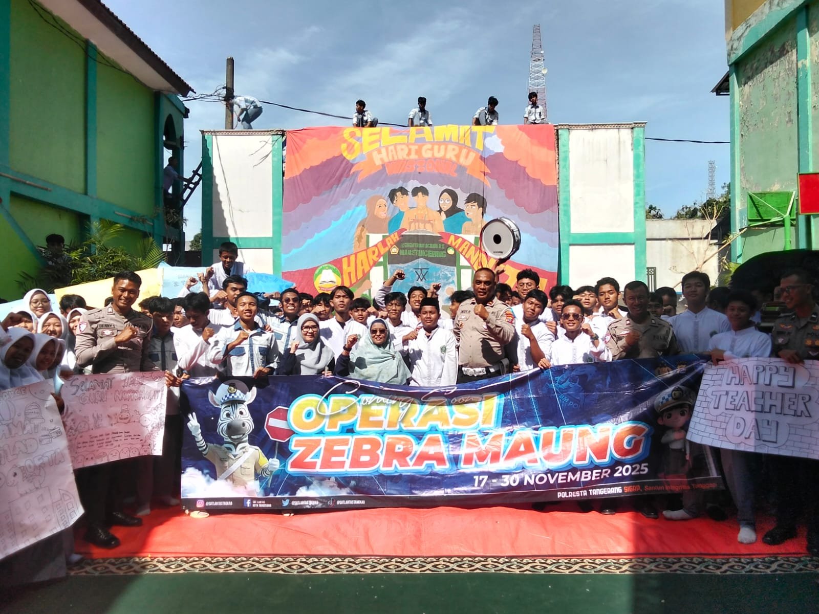 Tangerang Benuanewsbanten.com Satlantas Polresta Tangerang, Kamis (27/11/2025) menyambangi Madrasah Aliyah Negeri (MAN) 2 Balaraja. Tujuannya, untuk menyosialisasikan Operasi Zebra Maung 2025, dengan target utama audiens adalah para pelajar.