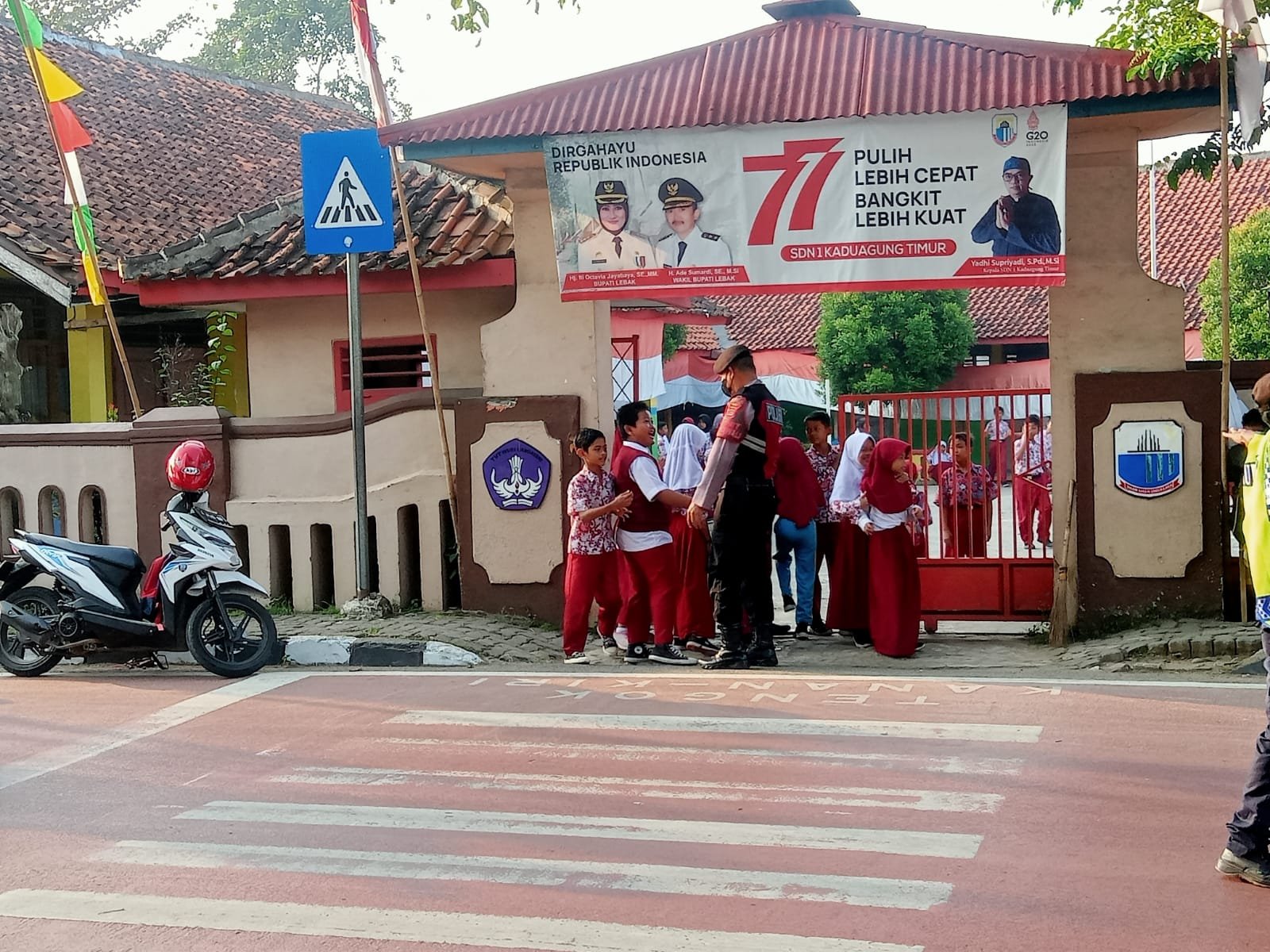 LEBAK Benuanewsbanten.com || Personel Sat Samapta Polres Lebak Polda Banten, Melaksanakan pengaturan di jalan raya, agar Masyarakat merasa Aman, Nyaman dan Lancar berkendara, ini merupakan Salah satu Program Kapolres Lebak “Lebak Mandala” (Aman Berkendara di Jalan Raya) dan pengaturan lalu lintas, guna mencegah kemacetan, kecelakaan lantas, dan Patroli Kamseltibcar Lantas dan antisipasi kriminalitasi dan balap liar pada titik-titik keramaian serta rawan laka di SDN 1 Kadu Agung Timur Rangkasbitung, dengan cara membantu menyeberangkan jalan Anak Sekolah, Pada Kamis (01/09/2022)