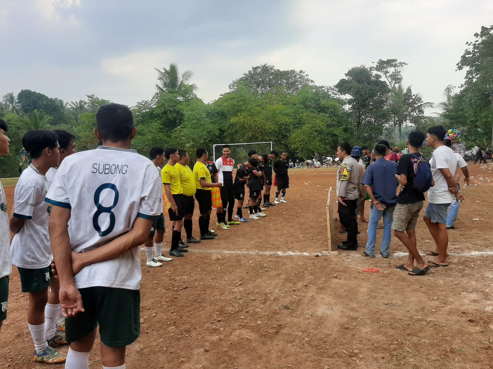 Bhabinkamtibmas Polsek warunggunung Bripka Adi dan 2 personil piket Polsek warunggunung melakukan pengamanan, Fasilitas Umum, Para Panitia, serta Para pemain Bola yang bertanding pada turnamen tersebut.