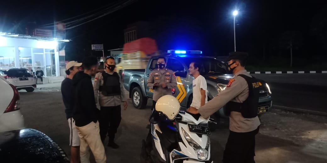 POLRESTA SERKOT Benuanewsbanten.com | anggota Polsek Baros Polresta Serkot BRIPKA Hari Trisyono bersama anggota lainnya melaksanakan Patroli malam dengan berdialog bersama pengendara Sepeda motor, Sabtu (24/7/2022) Malam.