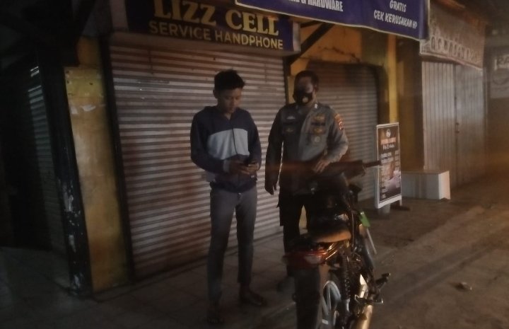 Serang kota Benuanewsbanten.com | anggota Polsek Baros Polresta Serkot BRIPKA Hari Trisyono bersama anggota lainnya melaksanakan Patroli malam dengan berdialog bersama pengendara Sepeda motor, Rabu (20/7/2022) Malam.