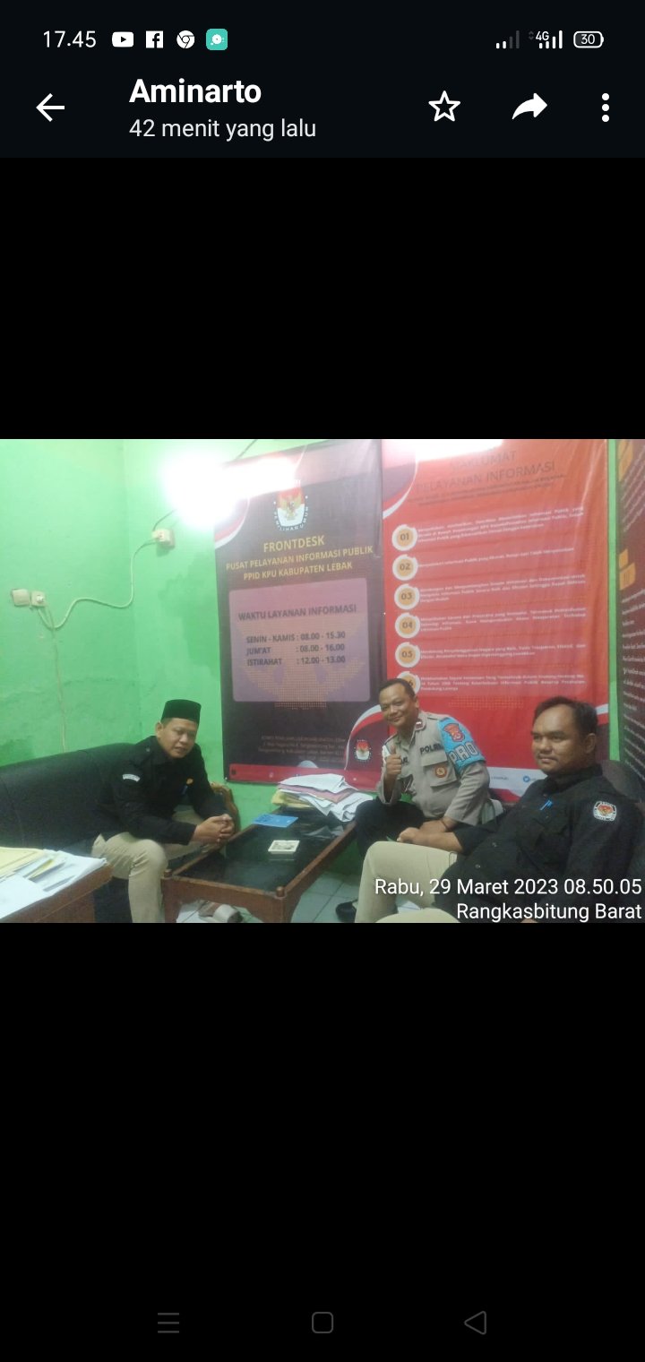 Kegiatan tersebut terus dilalukan oleh jajaran Polsek Rangkasbitung Polres Lebak dalam rangka menjalin kemitraan bersama KPU Lebak.Rabu (29/3/2023)