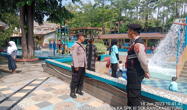 LEBAK, Benuanewsbanten.com -Menjaga kondusifitas dan keamanan di Wilayah Hukum Polsek Rangaksbitung, anggota Polsek Rangkasbitung BRIPKA Juremi dan BRIPKA H.Ramdani, melaksanakan giat monitoring ke wisata air kolam renang Bina Insani Mandiri (BIM) sekaligus edukasi kamtibmas Kepada para pengunjung.