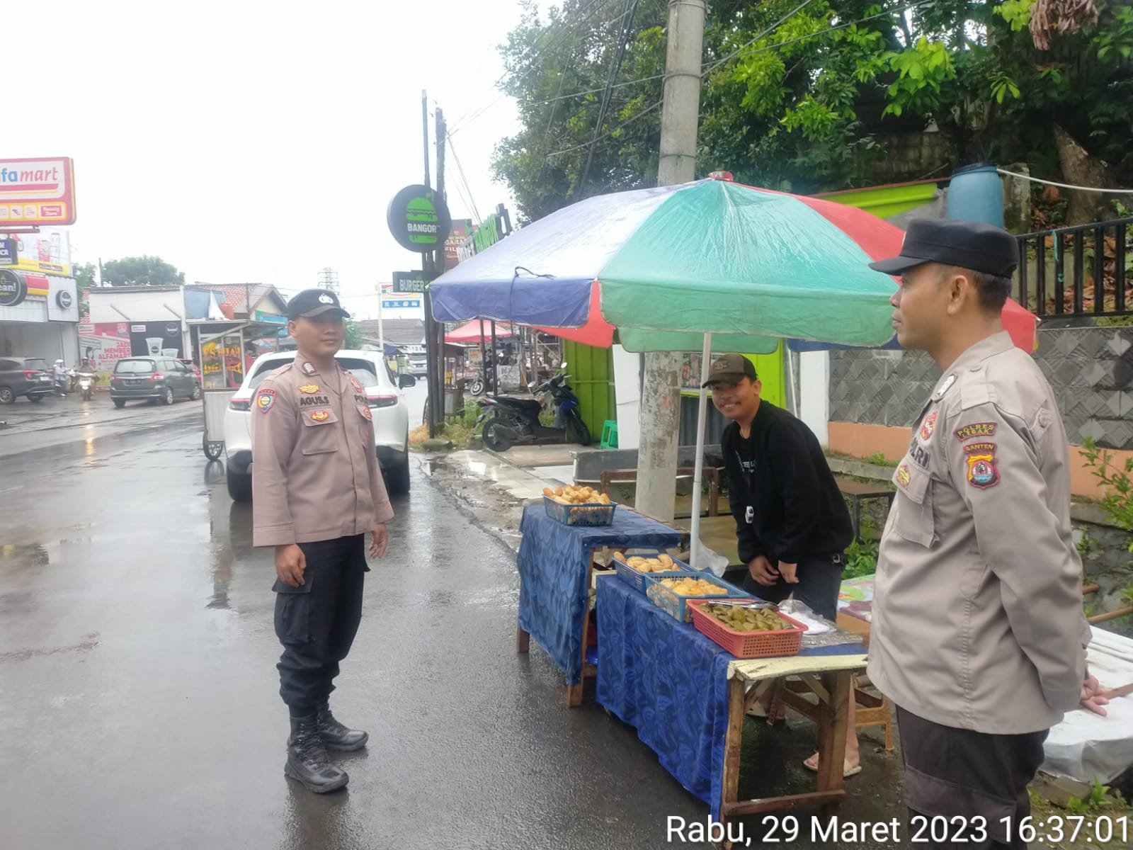 Anggota Polsek Rangkasbitung Polres Lebak Monitoring Tempat Jajanan Buka Puasa di Sepanjang Jalan Multatuli Sekaligus Giat Strong Point