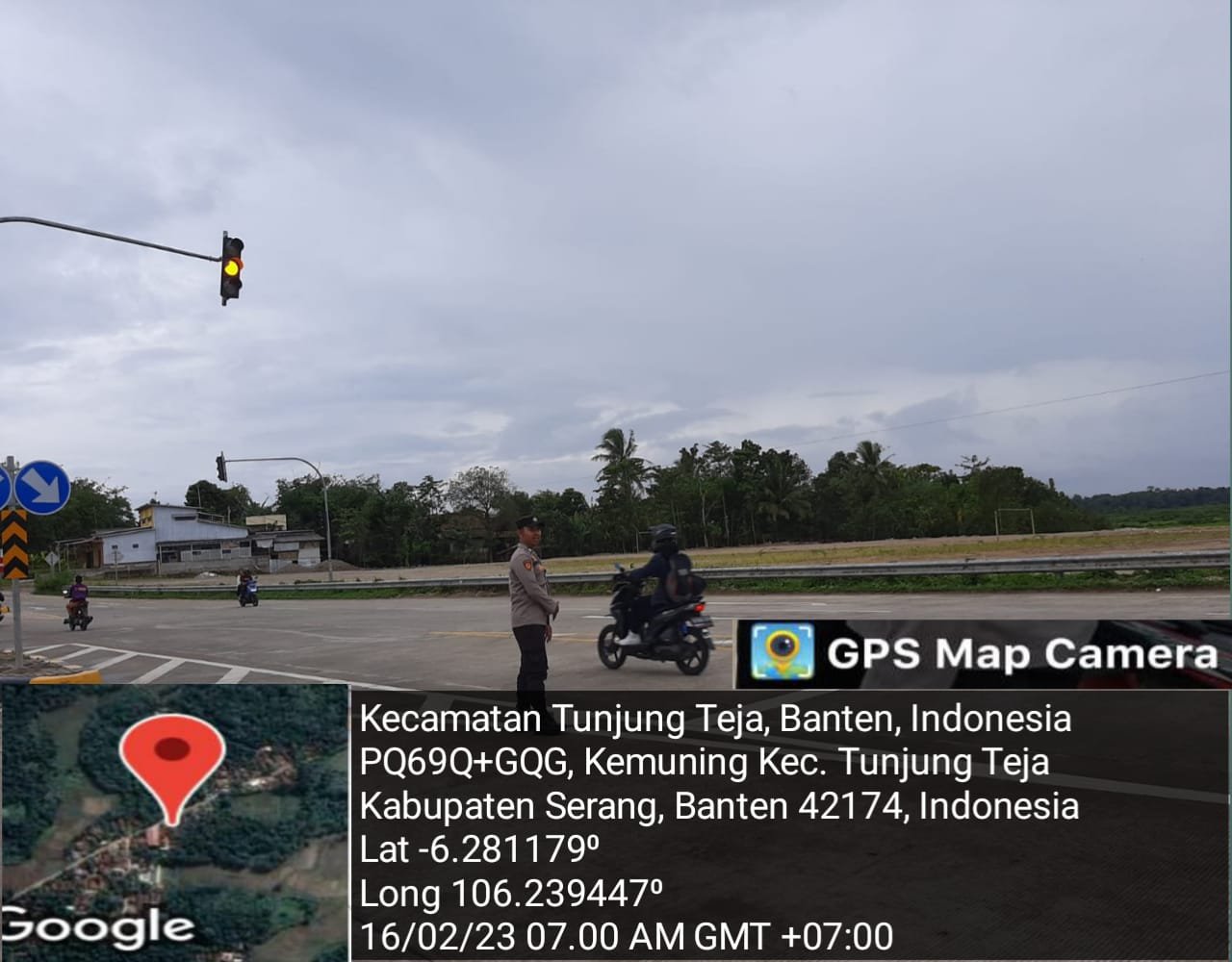 PETIR Benuanewsbanten.com, Dalam mewujudkan Kamtibcar Lantas Brigpol Aditya Setiawan. SH Anggota Samapta Polsek Petir Polres Serang Polda Banten melaksanakan pengaturan jalan raya pada hari Kamis (16/02/2023) pukul 07.00 WIB di Jln. Raya Petir Tunjung Teja Gerbang Tol Tunjung Desa Kemuning Kec. Tunjung Teja.