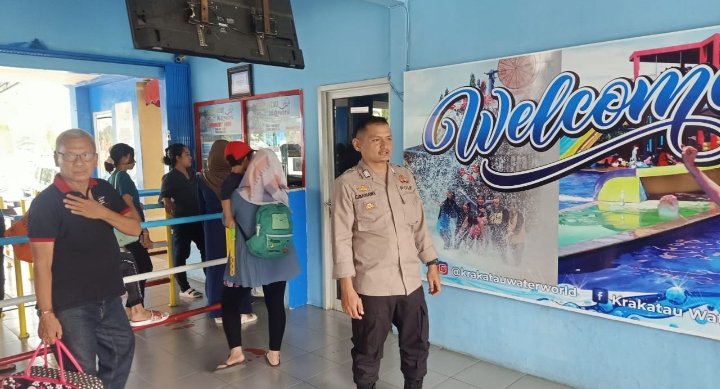 Kapolres Cilegon AKBP Eko Tjahyo Untoro Melalui Kapolsek Purwakarta Polres Cilegon IPTU H.iwan Sofiyan menyampaikan kepada Personil agar selalu Monitoring Tempat keramaian yang berada di wilayah Polsek Purwakarta seperti wahana Kolam Renang Krakatau Water Word.