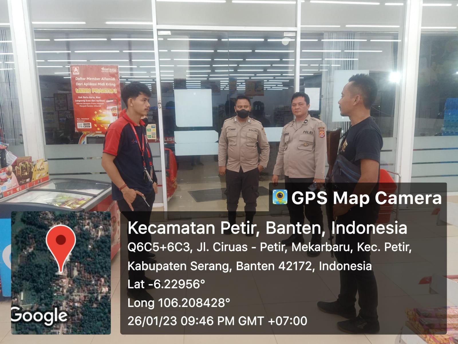 PETIR Benuanewsbanten.com, Polsek Petir Polres Serang Polda Banten Aipda Dedi Firmansyah dan Anggota meningkatkan Patroli Dialogis KRYD (Kegiatan Kepolisian Rutin yang Ditingkatkan) dalam rangka Antisipasi Gangguan Kamtibmas di Daerah Hukum Polsek Petir terhadap objek vital, waralaba dan daerah rawan kejahatan serta antisipasi balapan liar atau geng-geng motor, pada hari Kamis malam (26/01/2023) dimulai jam 21.30 WIB sampai selesai.
