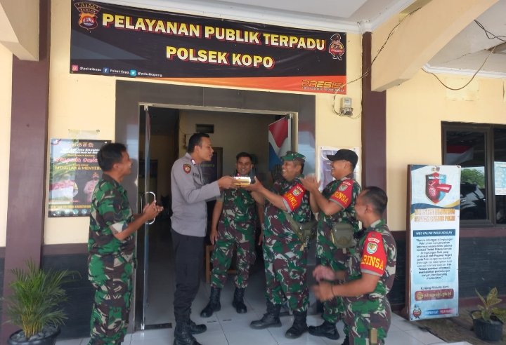 Kedatangan Anggota Koramil 0221/Kopo tersebut dalam rangka memberikan ucapan berupa kue ulang tahun dalam rangka Hari Bhayangkara ke-76 Tahun 2022 kepada Kapolsek Kopo beserta Jajarannya.
