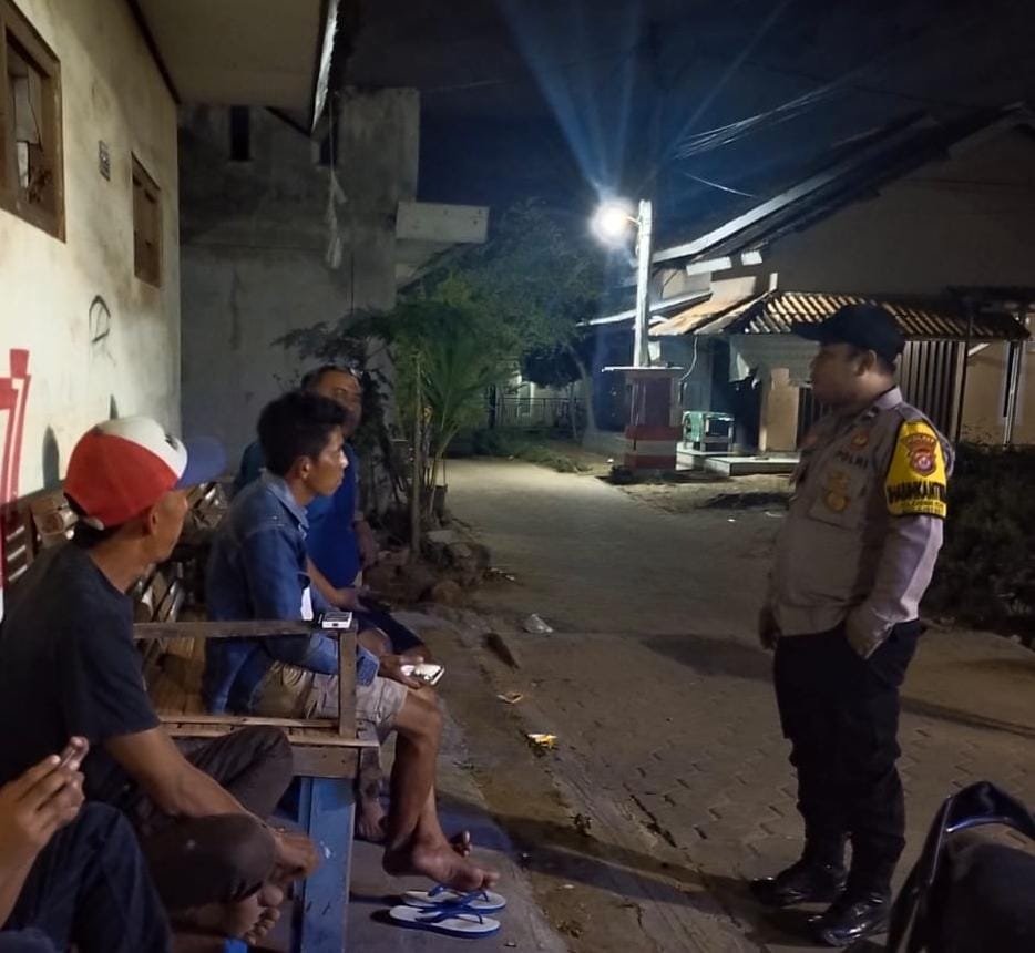 Cilegon Benuanewsbanten.com, Babinkmtibmas Polsek Cibeber polres Cilegon Polda Banten AIPDA Prasetta lakukan patroli serta Jalin kemitraan dengan petugas Siskamlkng lingkungan Sanbirangon guna tercipta keamanan yang kondusif Selasa dini hari (05/09/2023)