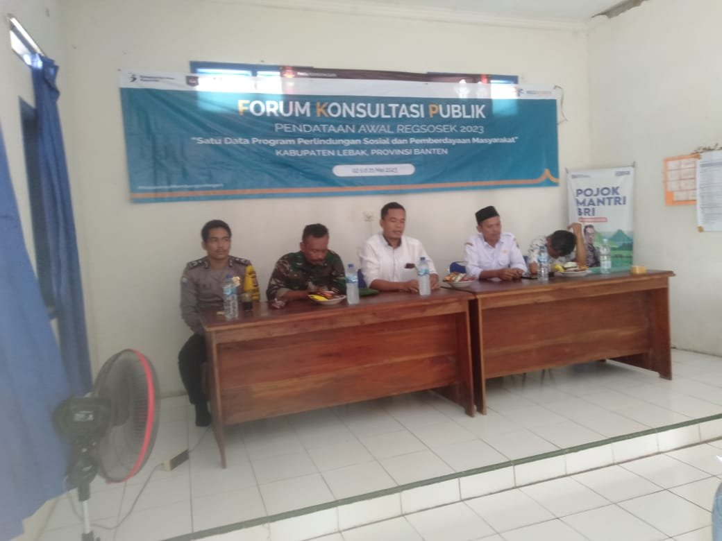 Lebak Benuanewsbanten.com, Bhabinkamtibmas Desa Bojongmanik Polsek Bojongmanik Polres Lebak Briptu Riqi, Menghadiri kegiatan Pendataan Awal Reistrasi Sosial Ekonomi (Regsosek) dan Forum Konsultasi Publik (FKP) yang bertempat di Aula Kantor Desa Bojongmanik Kecamatan Bojongmanik Kabupaten Lebak, Rabu (10/05/2023).