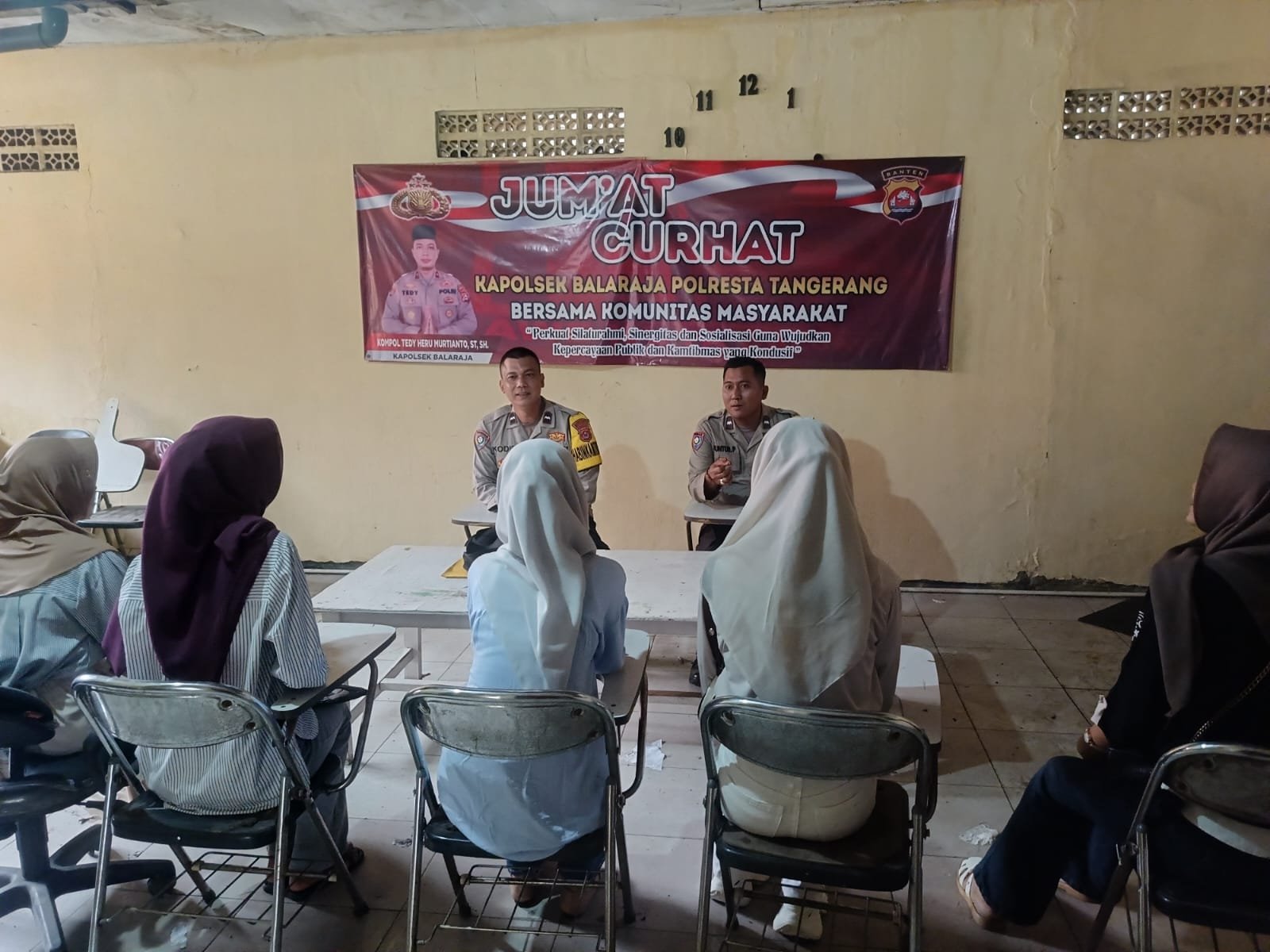 Dalam kegiatan Jumat Curhat dan Sambang di Kecamatan Balaraja Kapolsek Balaraja Kompol Tedy Heru Murtianto ST SH diwakili oleh Bhabinkamtibmas dari Polsek Balaraja berinteraksi langsung dengan Tokoh Masyarakat dan Warga binaan dengan Tujuan dari kegiatan ini adalah untuk mengenali lebih dekat permasalahan yang dihadapi masyarakat dan memberikan solusi atau saran yang dapat membantu.