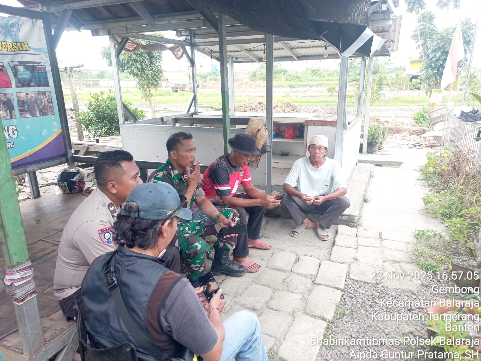 TANGERANG Benuanewsbanten.com | Dalam upaya menjaga stabilitas keamanan dan ketertiban masyarakat (kamtibmas), Bhabinkamtibmas Polsek Balaraja Aipda Guntur Pratama SH. melaksanakan kegiatan sambang serta patroli dialogis di Kp. Ampel RT 01/06 Desa Gembong Kecamatan Balaraja Kab. Tangerang. Minggu (23/11/2025).