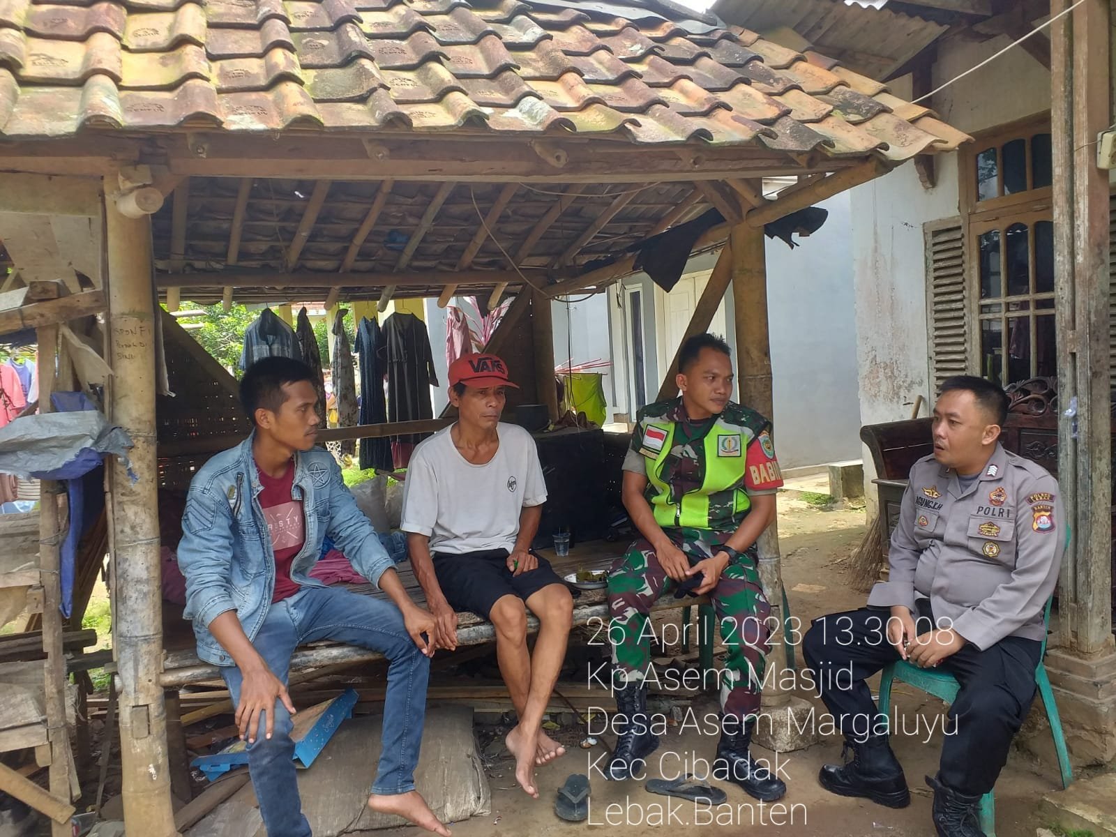 LEBAK, Benuanewsbanten.com.-Bhabinkamtibmas Polsek Cibadak Polres Lebak BRIPKA Agung, bersama Babinsa Koramil Rangkasbitung, melaksanakan program Guyub TNI-Polri sekaligus sambang ke warga masyarakat di wilayah Kecamatan Cibadak, Kabupaten Lebak. Untuk menjalin silaturahmi sekaligus menyampaikan himbauan Kamtibmas.Kamis (27/04/2023)