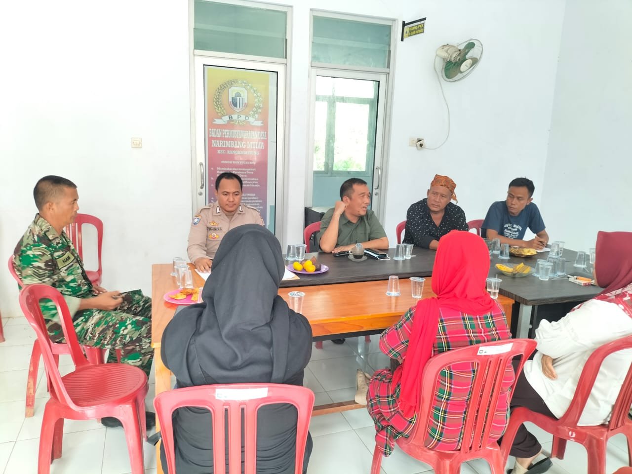 LEBAK Benuanewsbanten.com Bhabinkamtibmas Polsek Rangkasbitung Polres Lebak BRIPKA Figur Rabo Saputro, mengahdiri kegiatan musyawarah terkait kepemilikan kantor Desa Narimabang Mulia, Kecamatan Rangkasbitung, Kabupaten Lebak.Sabtu (10/06/2023)