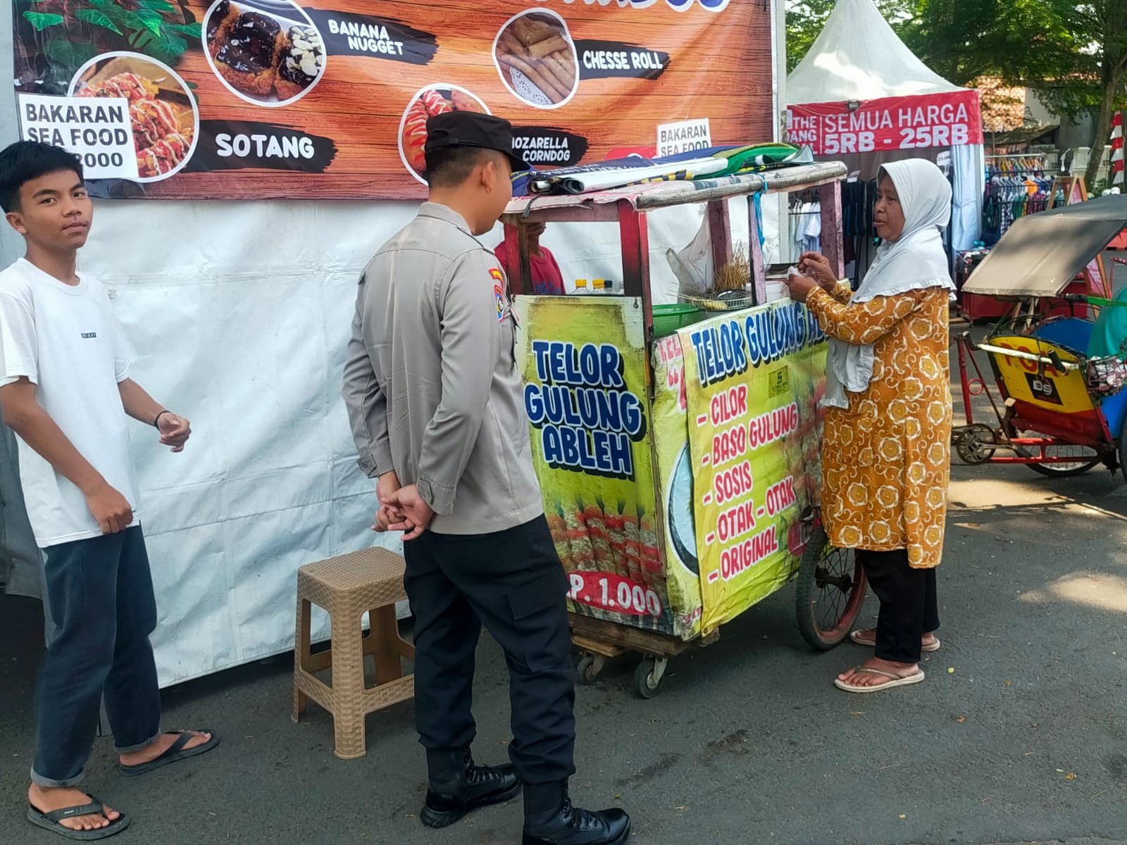 LEBAK Benuanewsbanten.com, Bhabinkamtibmas Polsek Rangkasbitung Polres Lebak BRIGADIR Imam Solichin, melaksanakan program Kapolri Quick Wins Presisi Polri sekaligus temui pedagang UMKM di alun-alun Rangkasbitung, Kecamatan Rangkasbitung, Kabupaten Lebak.