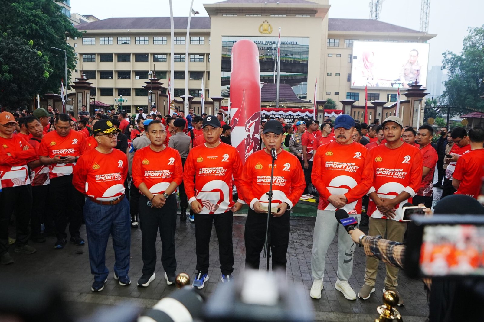JAKARTA Benuanewsbanten.com Kapolri Jenderal Listyo Sigit Prabowo menghadiri kegiatan Bhayangkara Sport Day di Lapangan Bhayangkara Polri, Jakarta Selatan, Sabtu (21/6/2025). Acara ini di antaranya dihadiri oleh Panglima TNI Jenderal Agus Subiyanto dan Jaksa Agung ST Burhanuddin.