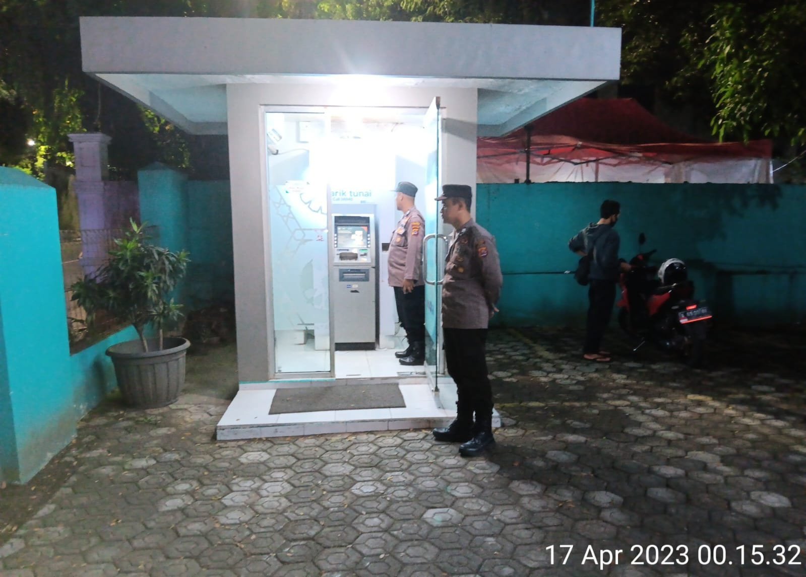 LEBAK Benuanewsbanten.com, Anggota Polsek Rangkasbitung Polres Lebak,BRIPKA H.Ramdani dan BRIGPOL Riki Adriana, melaksanakan patroli diseputaran Perbankan seperti Bank Madiri Cabang Rangkasbitung,Bank BSI Cabang Rangkasbitung dan Bank BCA.Senin pagi 17 April 2023,pukul.00.15 Wib.