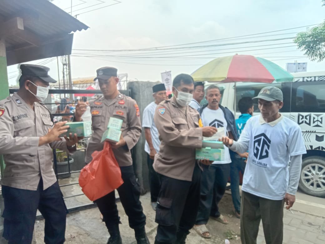 Serang Benuanewsbanten.com,Personel Polres Serang bagikan masker kepada relawan aksi Gardu Ganjar Anti penyebaran virus Covid-19. Minggu, (17/07/2022).