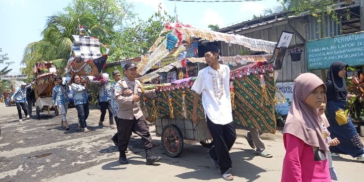 POLRES CILEGON Benuanewsbanten.com Polda Banten. Memperingati Maulid Nabi Muhammad SAW 1445.H dengan Rangkaian Panjang Mulud supaya situasi kamtibmas selalu kondusif, Bhabinkamtibmas Kelurahan Kotabumi Brigadir Agustoni Polsek Purwakarta Polres Cilegon Melaksanakan Pengamanan Iring iringan Pengamanan Panjang Mulud di Linkungan Penyairan Baru Kelurahan Kotabumi Kecamatan Purwakarta Kota Cilegon. Kamis.(28/09/2023).
