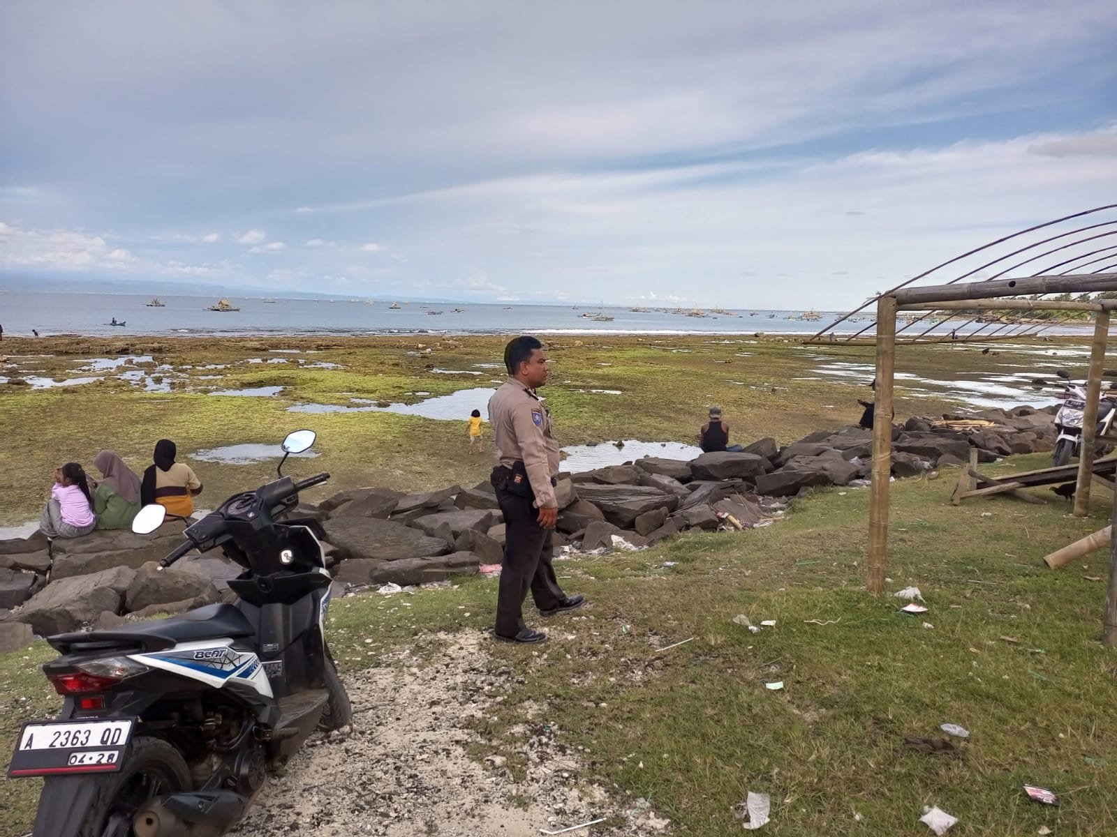 Bripka Rangga Tresna melaksanakan giat Patroli menyisir kawasan Pantai Tanjung Panto guna memastikan keamanan dan keselamatan pengunjung yang ada di sekitar Kawasan pantai agar berhati-hati dan melarang pengunjung berenang karena kawasan pantai Tanjung Panto tidak bisa di pakai berenang.