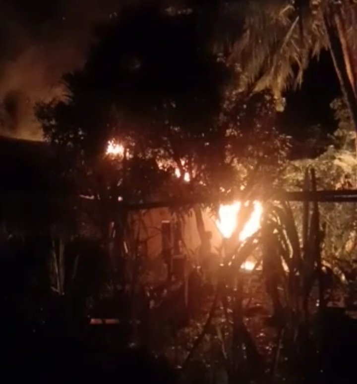 LEBAK Benuanewbanten.com Salah satu rumah warga milik Mardisam (60) warga Kampung Kulantung, RT 004 RW 002 Desa Mekarsari, Kecamatan Cihara Kabupaten Lebak, Banten dilalap sijago merah,Newsbin Senin (25/7/2022) sekira pukul 19. 15 WIB.
