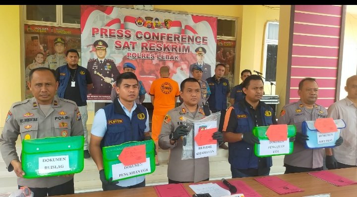 Dalam Press Conference Sat Reskrim Polres Lebak yang dihadiri oleh Kapolres Lebak Polda Banten AKBP Wiwin Setiawan, SIK MH didampingi Kasat Reskrim Polres Lebak Iptu Andi Kurniady Eka Setyabudi,S.T.K, S.I.K., KBO Sat Reskrim Polres Lebak Iptu Mulyadi, Kasie Humas Polres Lebak Iptu Aminarto dan Kanit Tipikor Sat Reskrim Polres Lebak IPDA Putu Ari Sanjaya, S.Tr.K,