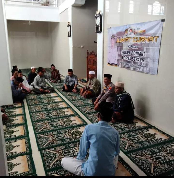 ‘Jumat Curhat’ yang merupakan Program unggulan Bapak Kapolda Banten dimana masyarakat bisa berdialog menyampaikan saran dan curhatan baik mengenai kamtibmas serta terkait tugas anggota polri di lapangan termasuk memberi saran dan masukan atas hal yang dirasakan masyarakat.