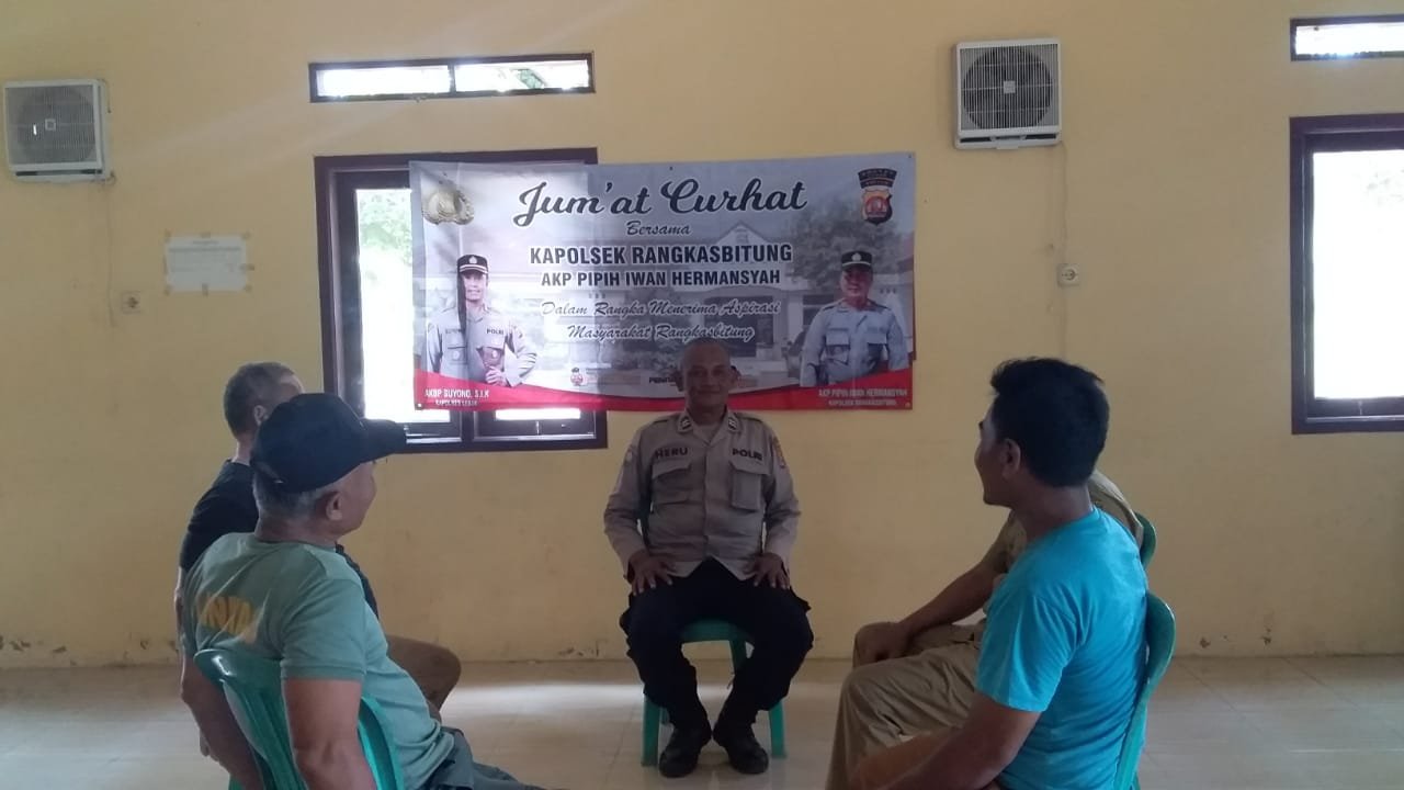 Hadir di kegiatan “Jumat Curhat” Kapolsek Rangkasbitung Kanit Binmas AIPTU Heru Sasmito SH,?,BRIPKA Juremi dan warga masyarakat Kampung Leweung Lojor.