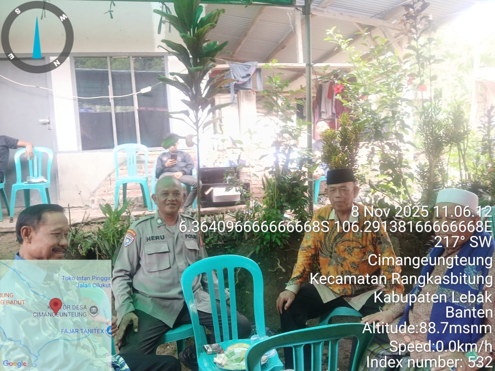 LEBAK Benuanewsbanten.com Kanit Binmas Polsek Rangkasbitung, AIPTU Heru Sasmito,temui tokoh masyarakat di Kampung Ciparada, Desa Cimangeunteung, Kecamatan Rangkasbitung, Kabupaten Lebak. Jumat (08/11/2025).