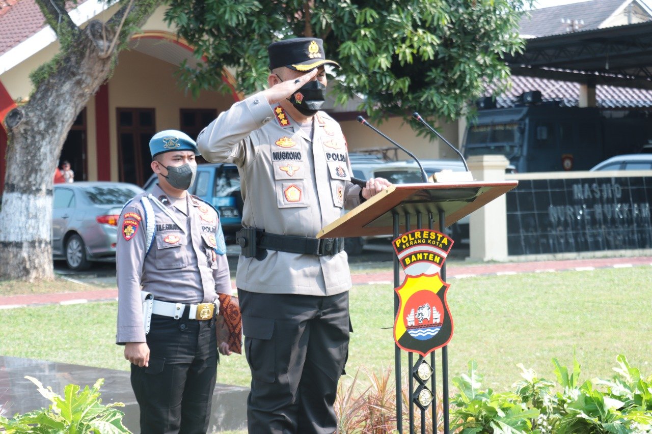 Pelaksanaan upacara di gelar di lapangan hijau Mapolresta Serkot Polda Banten, Jalan Ahmad Yani, Kota Serang.