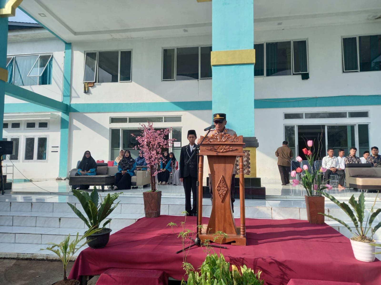 Dalam pelaksanaan Upacara di Ponpes Shohibul Muslimin Tunjung Teja Kapolsek Petir AKP Uka Subakti, SH. MM bertindak sebagai Pembina Upacara, dalam memberikan amanat sebagai Pembina Upacara, Kapolsek Petir menyampaikan dengan mengucapkan terima kasih kepada pihak Pimpinan Ponpes dan Para Guru Ponpes Shohibul Muslimin Tunjung Teja yang telah mengundang kami sebagai pembina upacara dapat bertatap muka langsung dengan santriwan – santriwatinya.