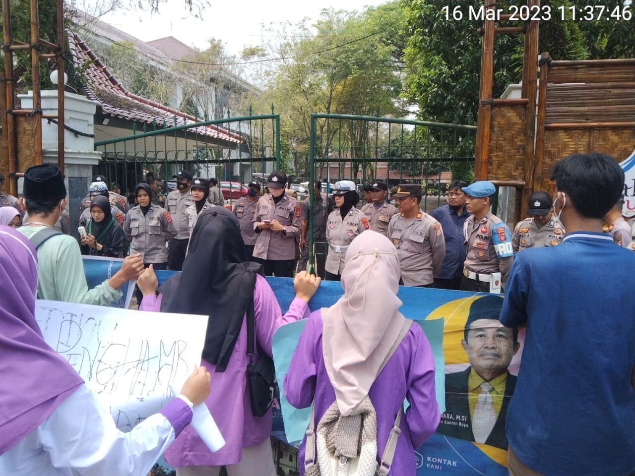 LEBAK Benuanewsbanten.com,-Kapolsek Rangkasbitung AKP Pipih Iwan Hermansyah.SH, bersama Personil Polsek Rangkasbitung,PJU Polres Lebak serta jajaran Polres Lebak melaksanakan giat pengamanan unras himpunan mahasiswa islam Majelis Penyelamat Organisasi, di kantor DPRD Kabupaten Lebak.Kamis (16/3/2023)