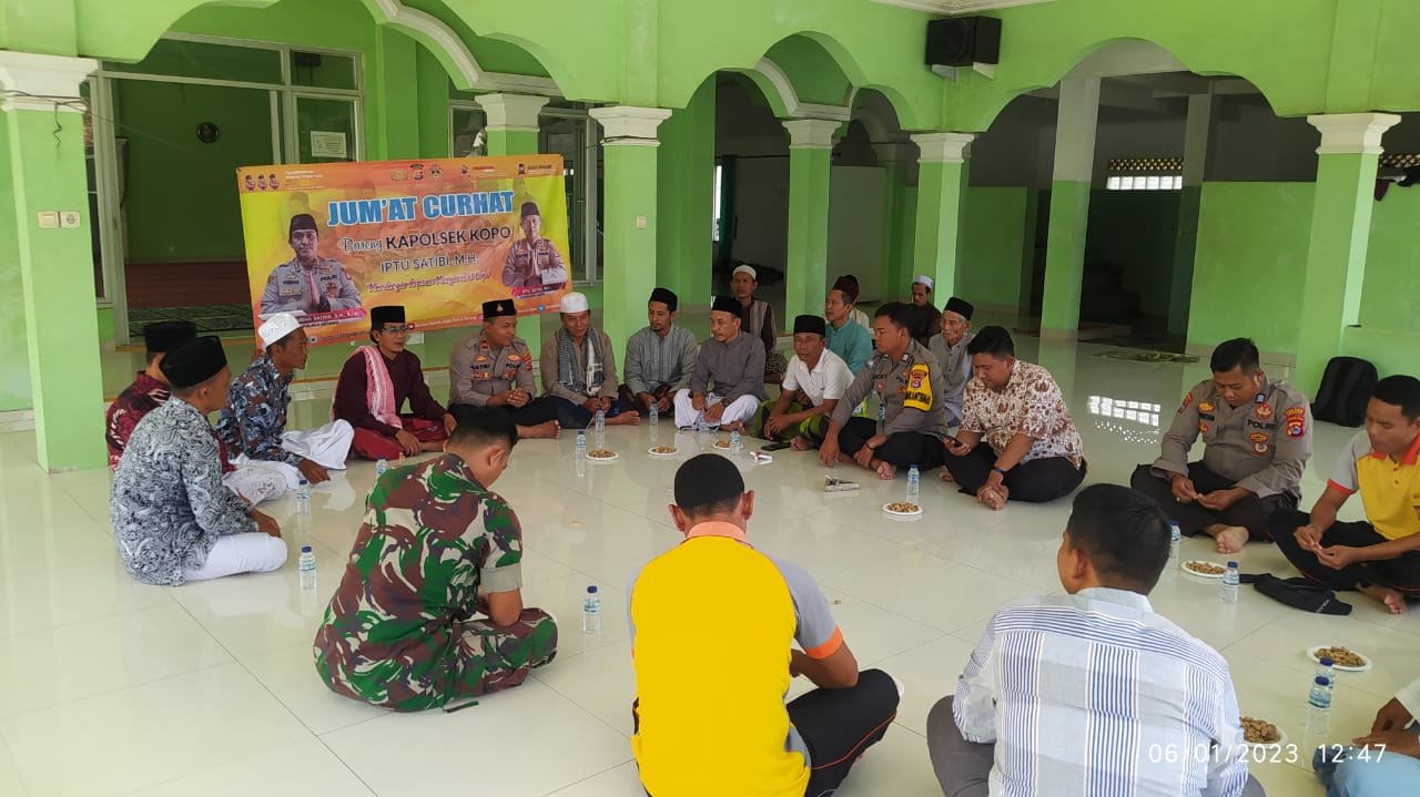 SERANG Benuanewsbanten.com Kegiatan Jum’at Curhat bertujuan mengetahui segala keluh kesah dan Aspirasi di Masyarakat dengan cara ngobrol bareng Kapolsek Kopo Polres Serang bertempat di Masjid Nurul Huda Kp. Bojong Peuteuy Desa Gabus Kecamatan Kopo, Kabupaten Serang Banten, Jum’at, (06/01/2023).
