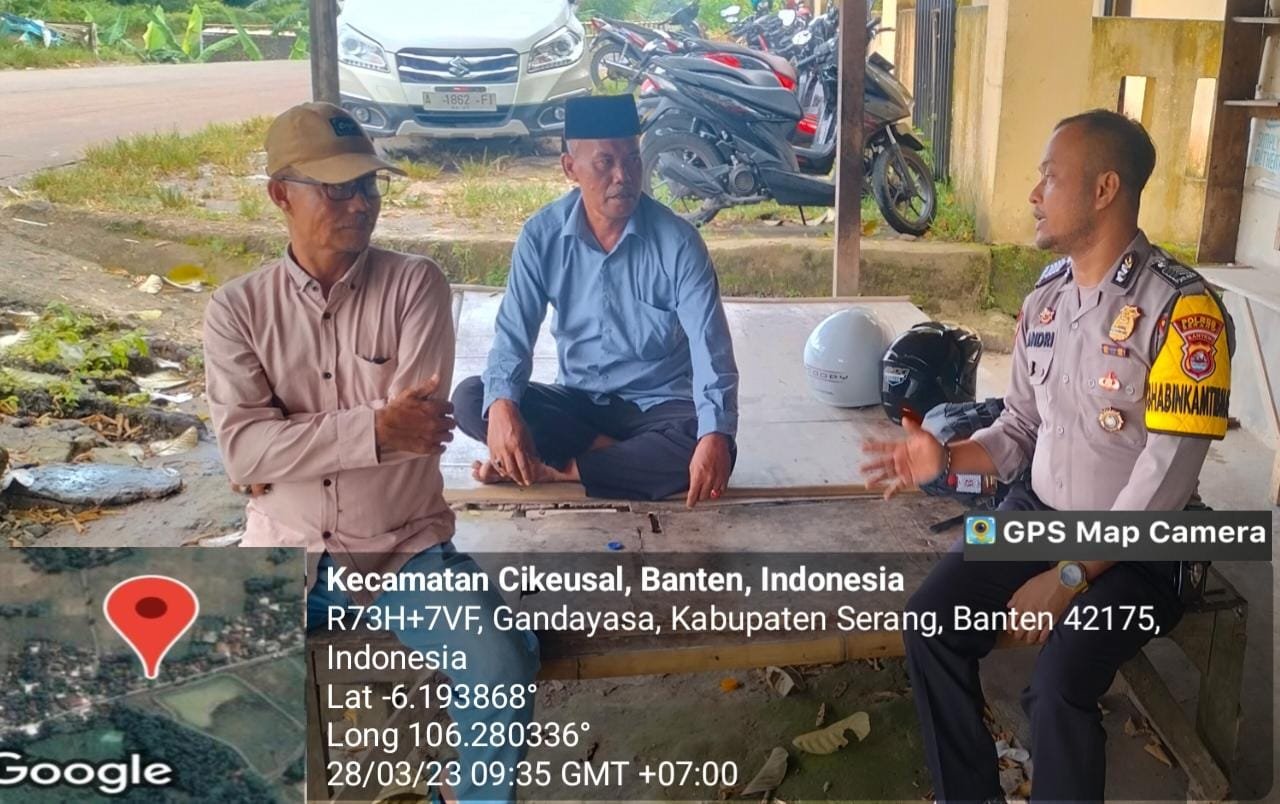 CIKEUSAL Benuanewsbanten.com– Bhabinkamtibmas Kp. Bagoang Desa Gandayasa Kecamatan Cikeusal rutin melakukan kunjungan ke rumah-rumah warga setempat. Tujuan dari kunjungan rutin ini adalah untuk menjalin hubungan yang baik dengan warga dan mengedukasi mereka mengenai cara-cara untuk menjaga keamanan lingkungan sekitar, Selasa ( 28/03/23 ).
