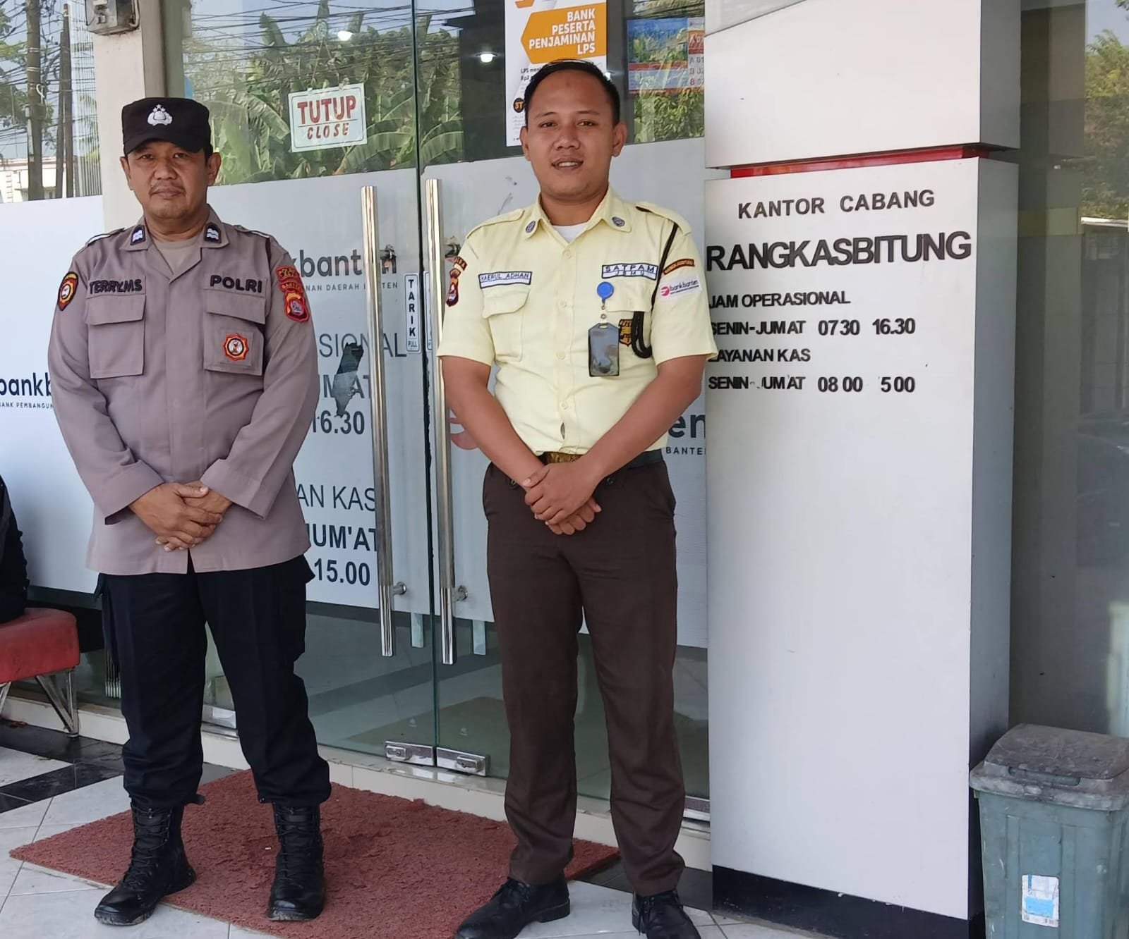 Pastikan Aman,Kanit Samapta Polsek Rangkasbitung Polres Lebak Patroli Dialogis Ke Bank Banten