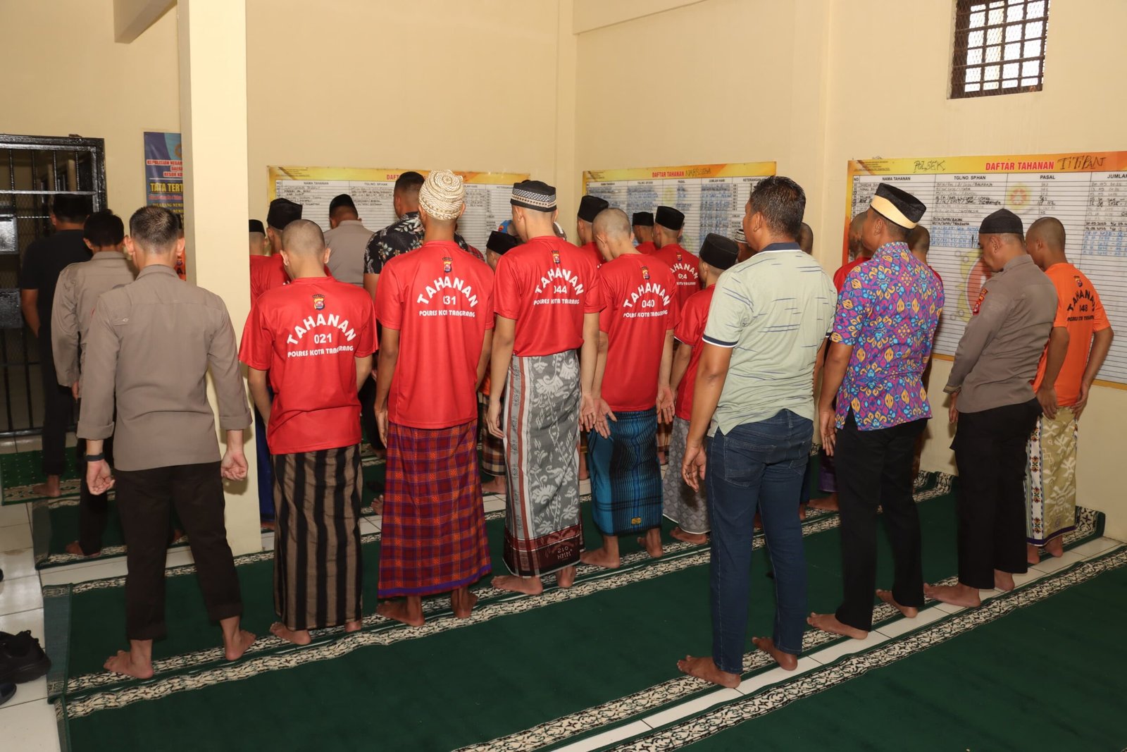 Tangerang Benuanewsbanten.con Kapolresta Tangerang Kombes Pol Andi Muhammad Indra Waspada Amirullah melaksanakan shalat berjamaah bersama para tahanan di Ruang Tahanan dan Barang Bukti (Tahti) Mapolresta Tangerang, Jumat (24/10/2025).
