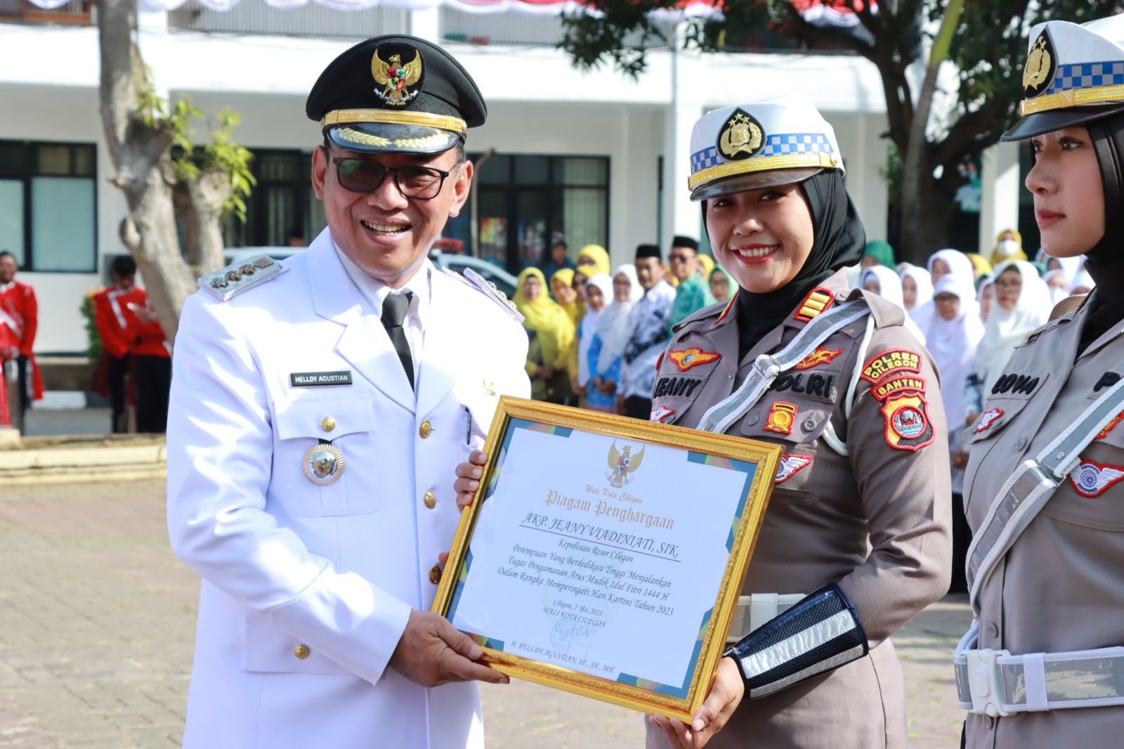 CILEGON Benuanewsbanten.com Walikota Cilegon H. Helldy Agustian berikan penghargaan kepada 16 Polwan Polres Cilegon Polda Banten dalam rangka Peringatan Hari Kartini Tahun 2023 Tingkat Kota Cilegon Dalam Melaksanakan tugas pengamanan arus mudik idul fitri 1444 H diwilayah Kota Cilegon diantaranya Pelabuhan Pelindo Ciwandan Dan Pelabuhan Merak Kota Cilegon Provinsi Banten. Selasa, (02/05).