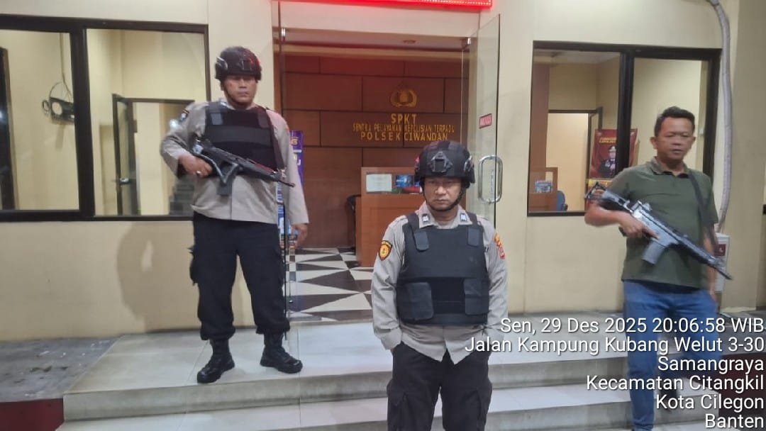 Cilegon Benuanewsbanten.com Dalam Kesiap Siagaan dan Memperketat Penjagaan Mako (Markas Komando), Personil Polsek Ciwandan Polres Cilegon Polda Banten melaksanakan Sistem Pengamanan Markas Komando (Sispam Mako), Selasa (30/12/2025).