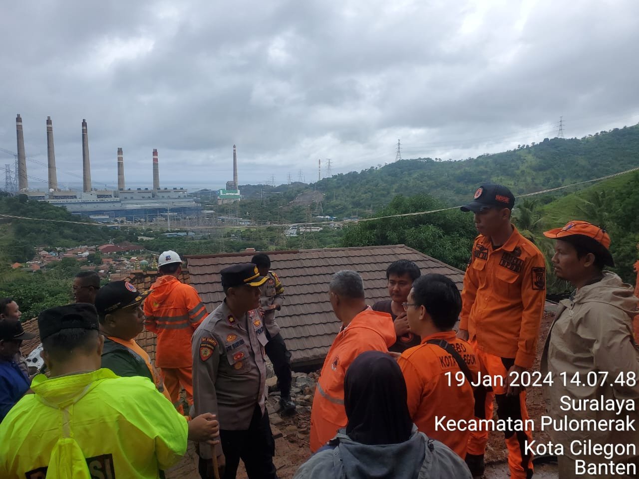 Kapolres Cilegon Polda Banten AKBP Eko Tjahyo Untoro melalui kapolsek Pulomerak KOMPOL Ate Waryadi menjelaskan bahwa Anggota jaga Polsek Pulomerak Polres Cilegon Polda Banten melakukan pengecekan dan melakukan pertolongan di tempat kejadian tanah longsor yang akibat dari curah hujan terlalu lama sehingga tanah longsor menimpa rumah warga setempat.