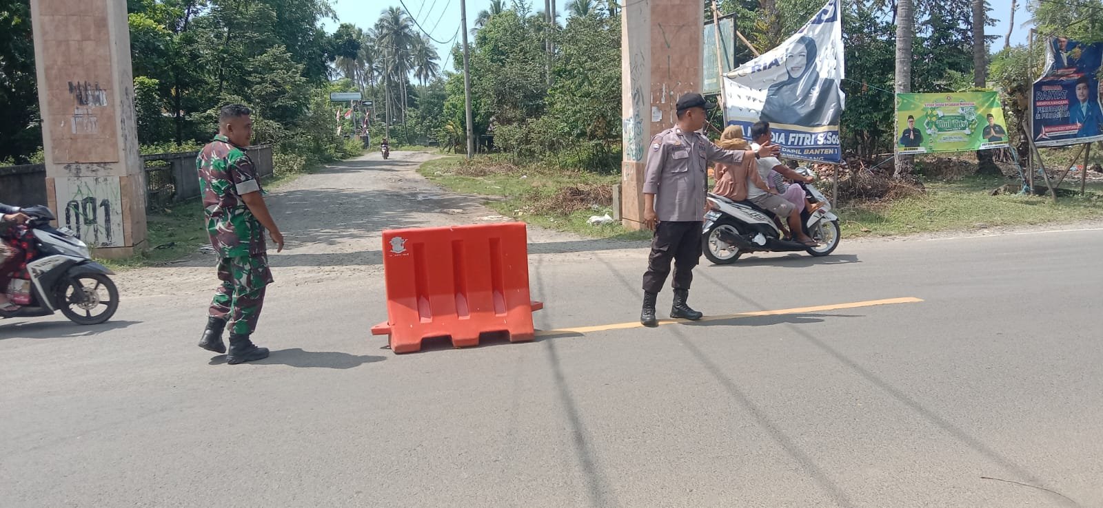 Lebak, Benuanewsbanten.com – Personil PosJaga Operasi Ketupat maung 2023 Brigadur M. Romdani beserta personil Pos Jaga lainnya melaksanakan pengaturan lalu lintas di depan Pos Jaga yang berada depan pintu masuk Wisata Pantai Tanjung Panto Desa Muara Kecamatan Wanasalam Kabupaten Lebak, Sabtu (22/4/2023).