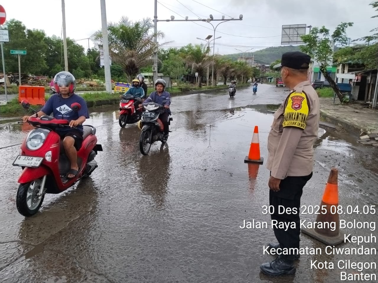 Cilegon Benuaneweabaten.com Personil Pos Pam 5 Polsek Ciwandan Polres Cilegon Polda Banten melaksanakan kegiatan pengaturan lalu-lintas dalam pengamanan Libur Natal 2025 Dan Tahun Baru 2026. Selasa (30/12/2025).