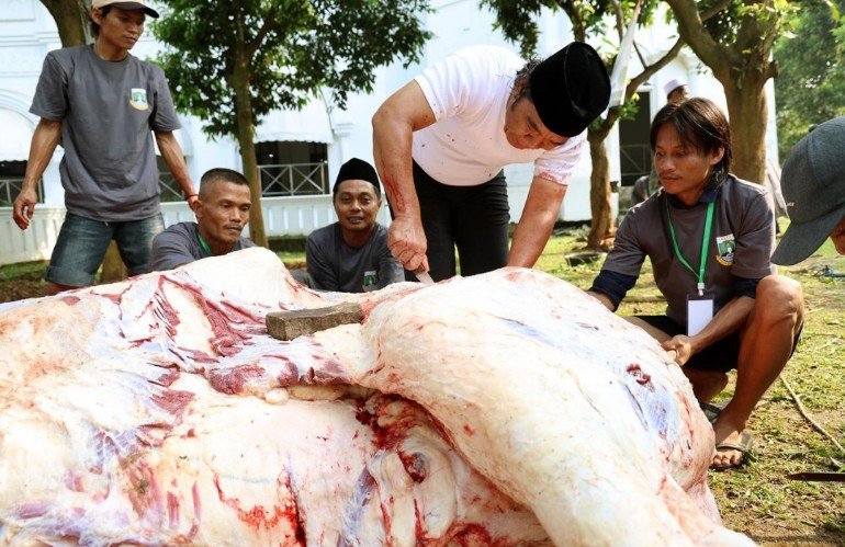 Penjabat (Pj) Gubernur Banten Al Muktabar menyembelih langsung sapi bantuan kemasyarakatan dari Presiden Republik Indonesia Joko Widodo. Sapi bernama Pegon itu berjenis limosin dengan bobot 1.130 kg, yang dibeli dari Abdul Rosyid asal Kecamatan Karang Tengah Kota Tangerang.