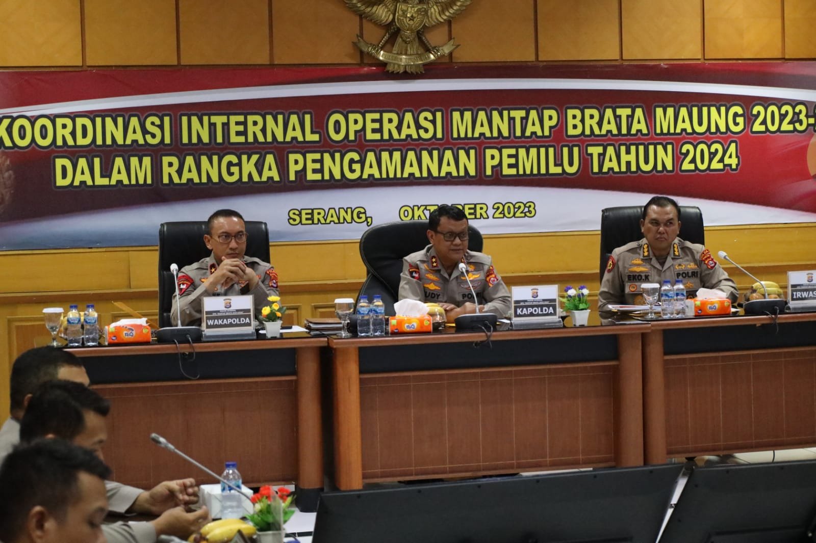 Serang Benuanewsbanten.com Dalam rangka kesiapan pengamanan Pemilu Tahun 2024, Polda Banten menggelar Rapat Koordinasi Internal Operasi Mantap Brata Maung 2023-2024 yang bertempat di Rupatama Polda Banten pada Kamis (05/04).