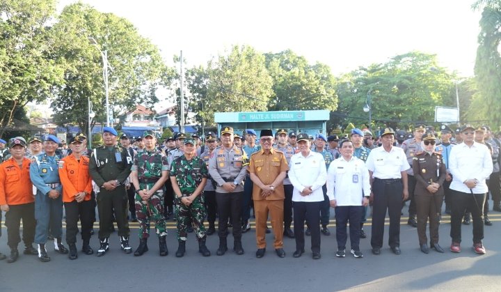 Cilegon Benuanewsbanten.com Kepolisian Resor Cilegon bersama Forkopimda Kota Cilegon Melaksanakan Apel Gelar Pasukan Operasi Ketupat Maung 2023 dalam rangka pengamanan Idul Fitri 1444 H tahun 2023 di Depan Mako Polres Cilegon Polda Banten, Senin (17/04).