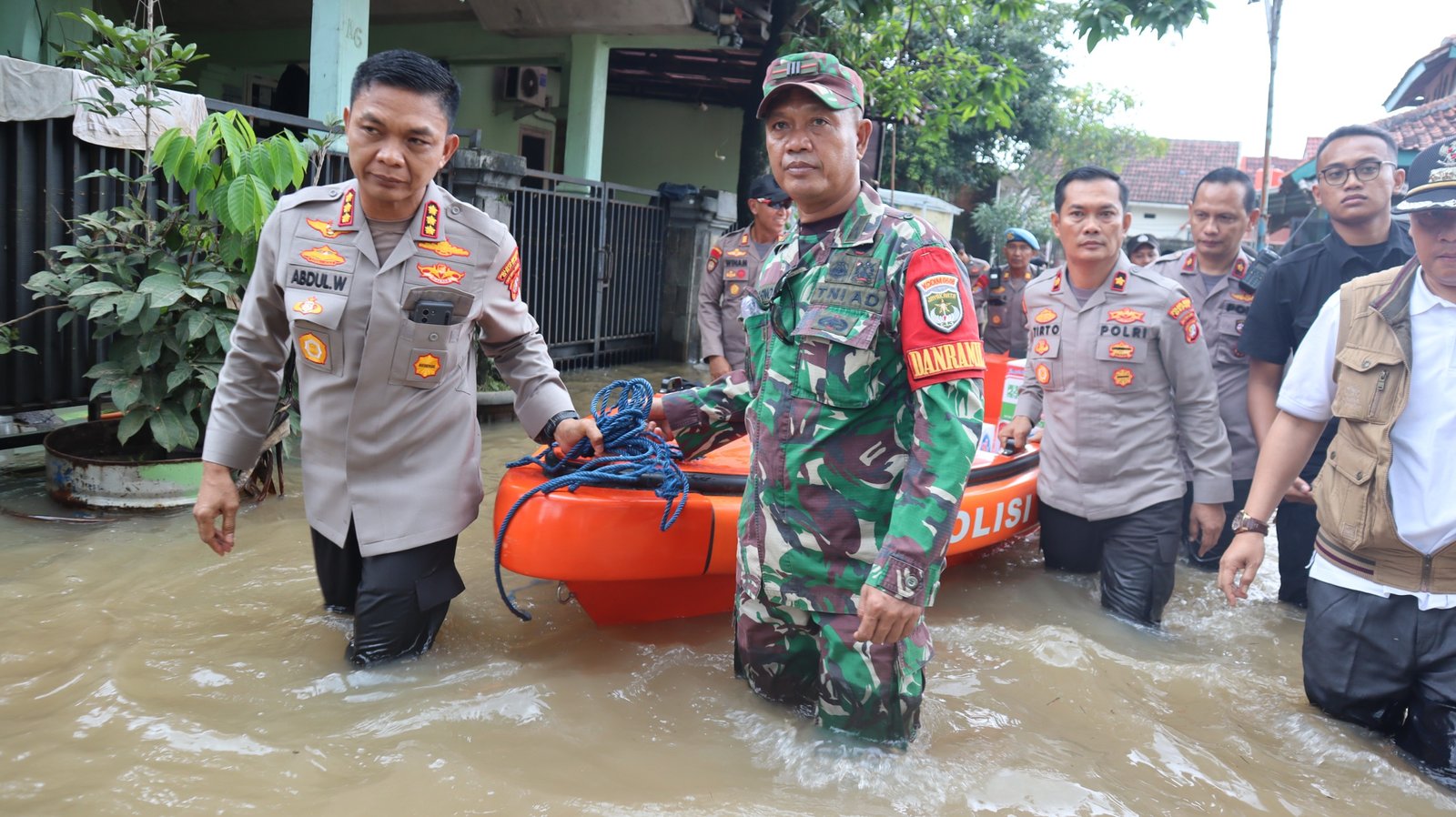 Jakarta Benuanewsbanten.com Banjir melanda Perumahan Asri Sawangan, Depok, Jawa Barat, dengan ketinggian air mencapai 1,5 meter. Polri-TNI pun sigap membagikan makanan ke warga yang terdampak.