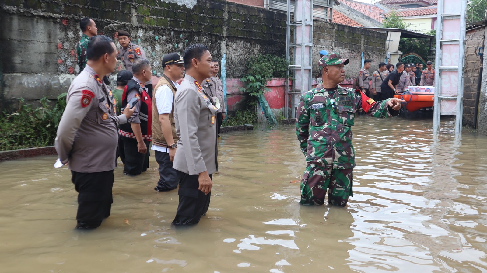 Sementara di Depok, luapan Kali Pesanggrahan mengakibatkan banjir di Perumahan Sawangan Asri dan beberapa wilayah di Kelurahan Sawangan Baru, dengan puluhan rumah terendam. Polri dan TNI terus berkoordinasi dengan instansi terkait untuk melakukan evakuasi, pendistribusian bantuan, serta pemantauan kondisi di lapangan guna memastikan keamanan dan keselamatan warga.
