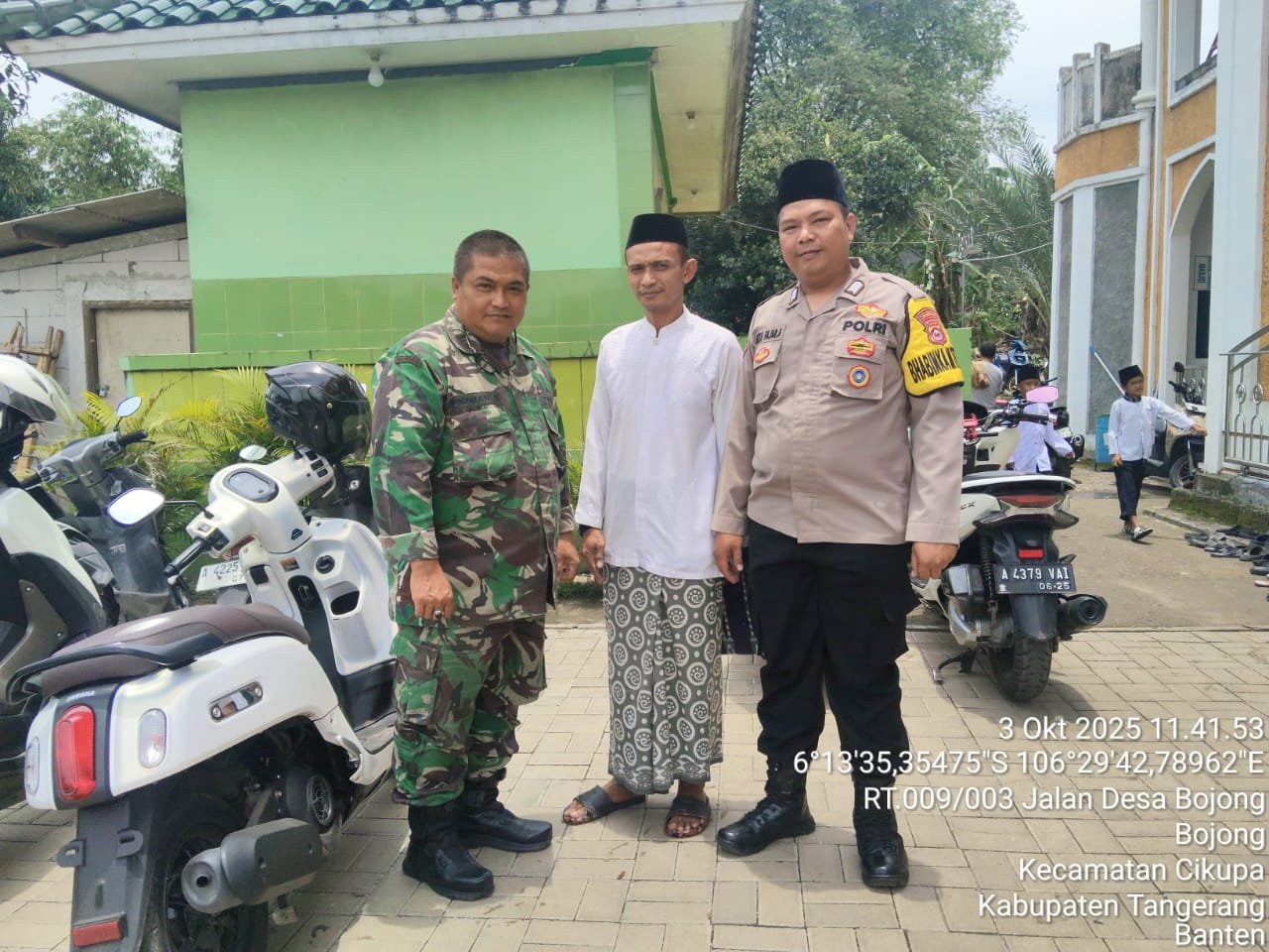 Kegiatan tersebut dihadiri oleh Bripka Reza Fajar A., selaku Bhabinkamtibmas Desa Bojong, serta Peltu Firman, Babinsa Desa Bojong. Melalui kegiatan ini, aparat TNI-Polri menyampaikan himbauan harkamtibmas sekaligus menjalin komunikasi yang baik dengan jamaah dan warga sekitar.