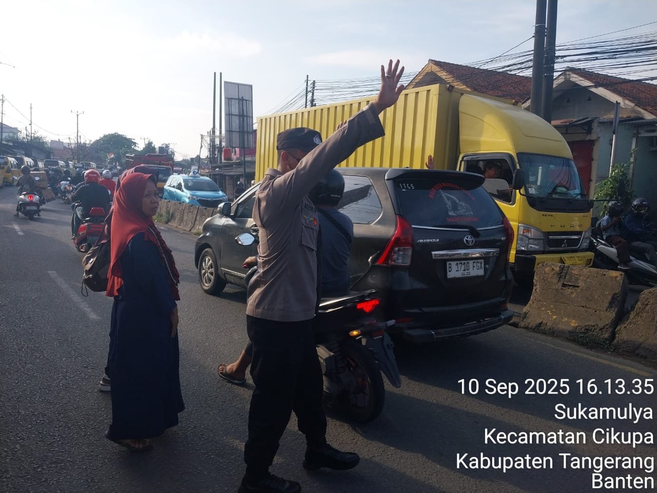 Polsek Cikupa Gelar Pengaturan Lalu Lintas Sore Hari di Pertigaan Columbus PT Cingluh