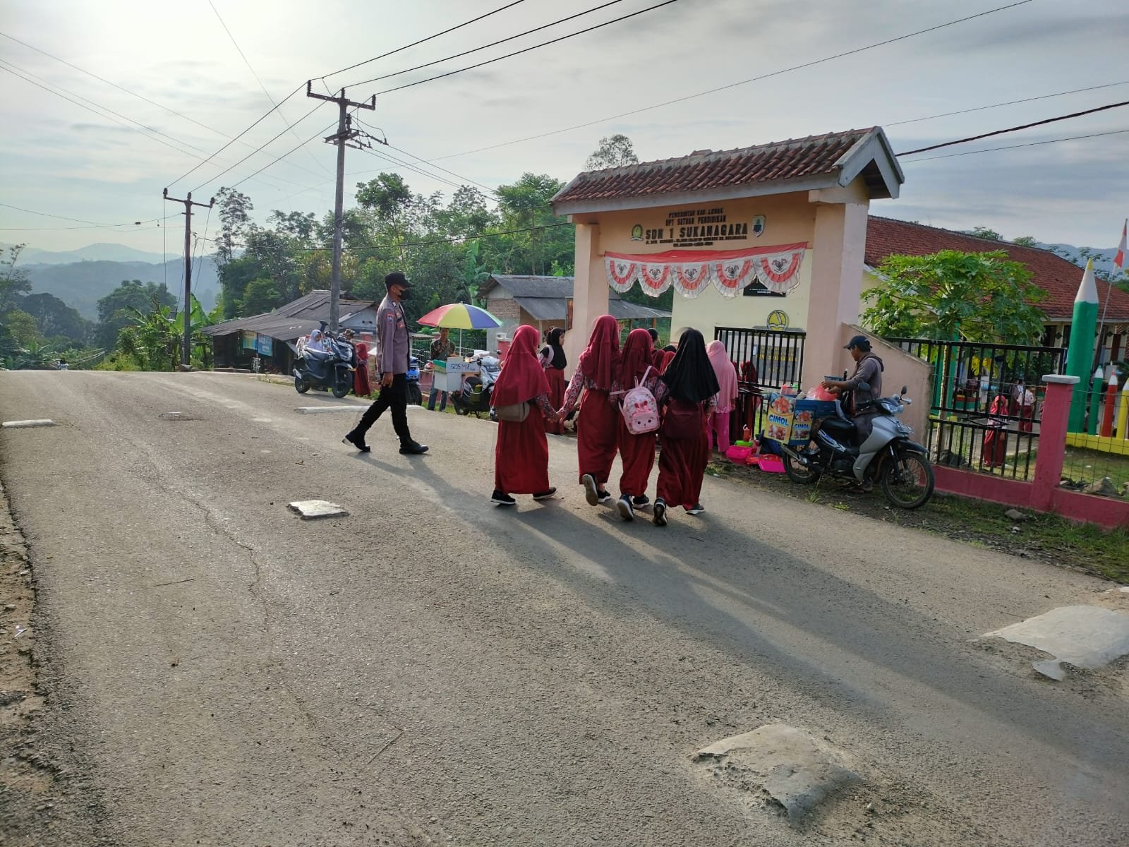 LEBAK Benuanewsbanten.com -Untuk membatu kelancaran arus lain anggota Polsek Muncang laksanakan giat Strong Point di depan Sekolah ,membantu menyebrangkan anak sekolah agar lalulintas berjalan lancar,agar merasa nyaman dan lancar.